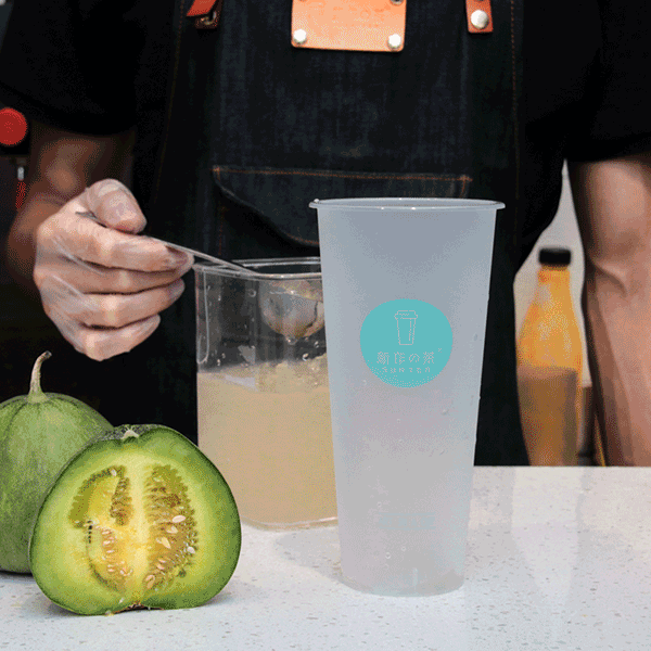 1.坚持选用新鲜水果,在杯子底下倒入白玉、新鲜蜜瓜肉、再铺上青玉。