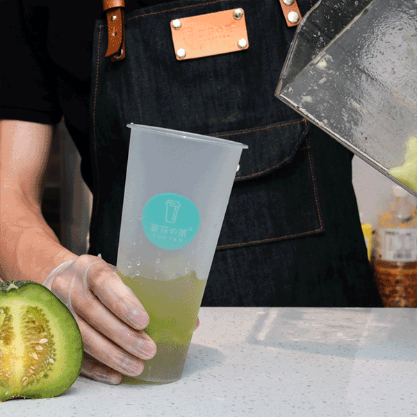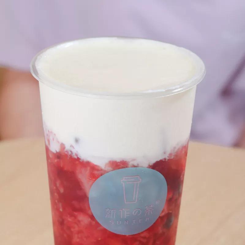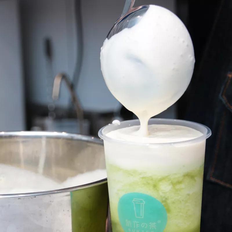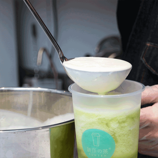 3.最后再往杯子里加入一勺浓郁芝士奶盖,一杯新绿小蜜蜜就做好了。